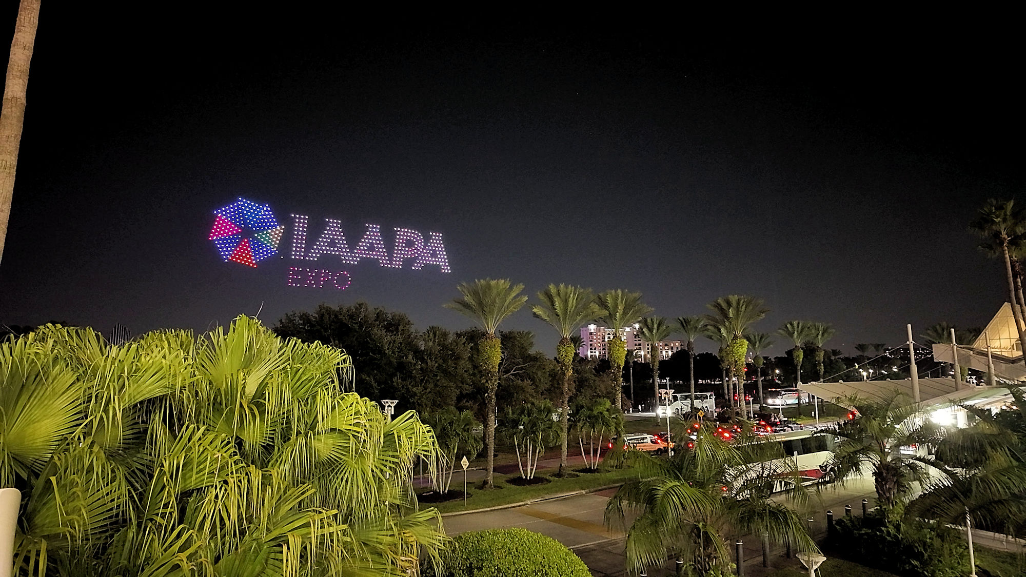 Above is a photo of the 2025 IAAPA Expo Night Drone Show from the North Hall of the Orange County Convention Center in Florida. Photo by David Aughinbaugh II for NavFile.