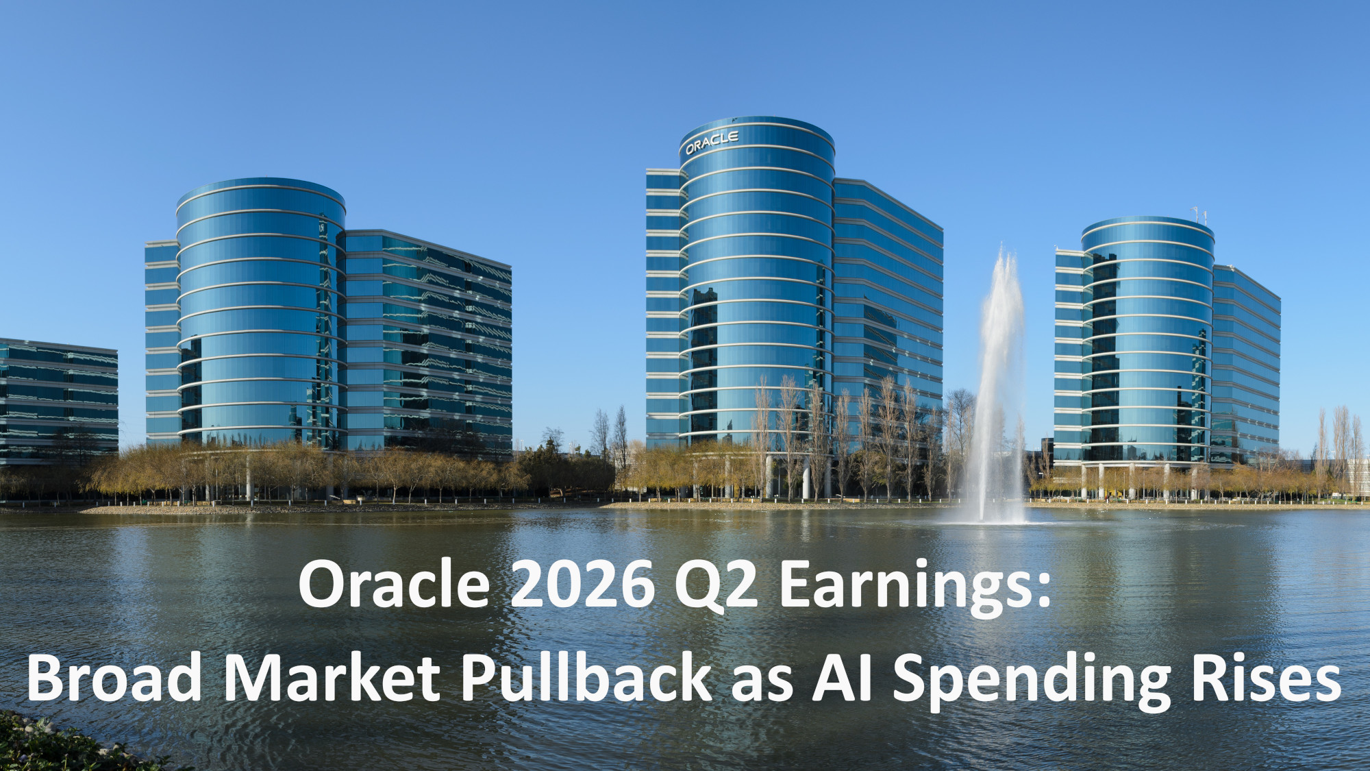 Above: The Oracle Headquarters with the 2026 Q2 Earnings headline. Original photo by King of Hearts on Wikimedia Commons. Photo redesigned by NavFile and released under a Creative Commons License.