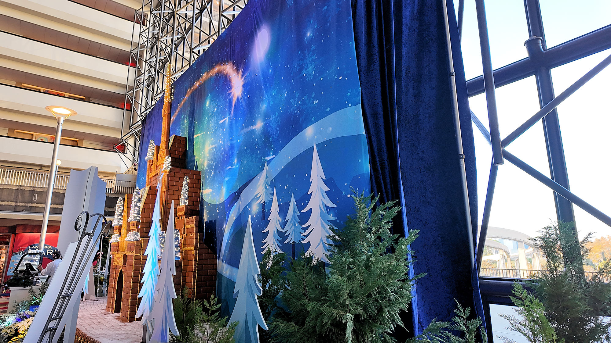 The Boardwalk Inn’s gingerbread display draws from the resort’s turn-of-the-century Atlantic City theme. Presented as a small scale boardwalk scene, it features gingerbread storefronts and decorative candy details that mirror the surrounding decor.