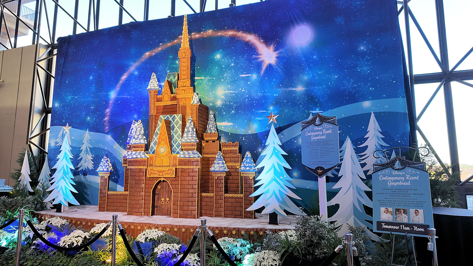 The Contemporary’s gingerbread display marks its 14th consecutive holiday season at the resort. The design includes multiple golden Mickeys to celebrate.
